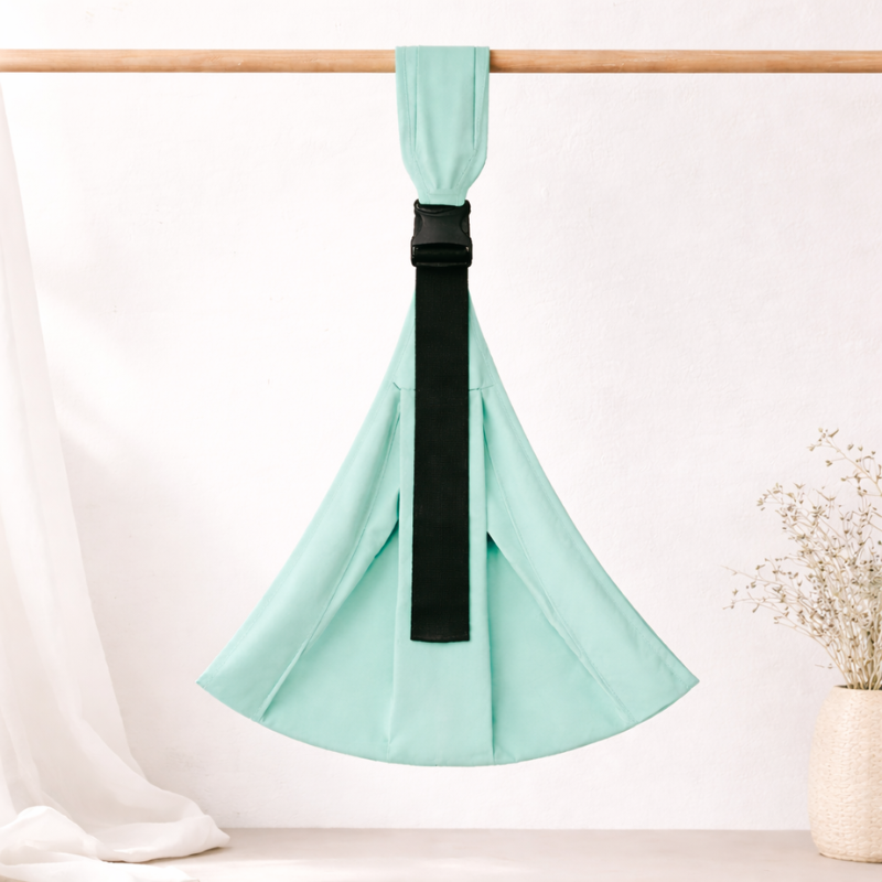 Notre écharpe s’enfile simplement, s’ajuste en un clin d'œil, et tient bien en place. Pas de nœuds, pas de mode d’emploi à rallonge, juste un système intuitif pensé pour les parents pressés et les bébés impatients