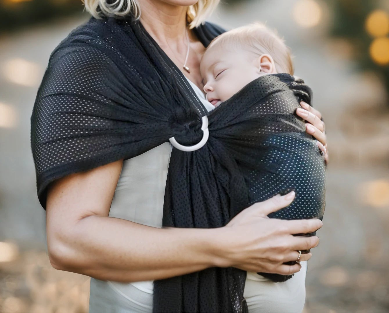 L’écharpe de portage en maille est conçue pour les beaux jours : un ring sling léger et aéré qui permet de garder bébé tout contre soi en restant agréable à porter. Son tissu ajouré laisse l’air circuler et sèche rapidement, pratique pour les moments de proximité au quotidien.