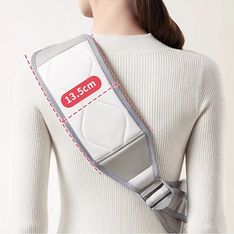 La large bretelle rembourrée (13,5 cm) reste stable, les boucles empêchent tout desserrage, et le tissu en coton respirant est doux au toucher, adapté aux peaux sensibles.