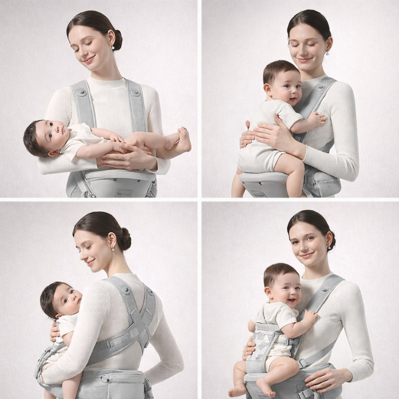 Grâce à ses multiples options de portage, ce modèle s'adapte à différents modes d'utilisation. Il permet d'ajuster la position de l’enfant en fonction de la situation, tout en restant facile à utiliser au quotidien.
