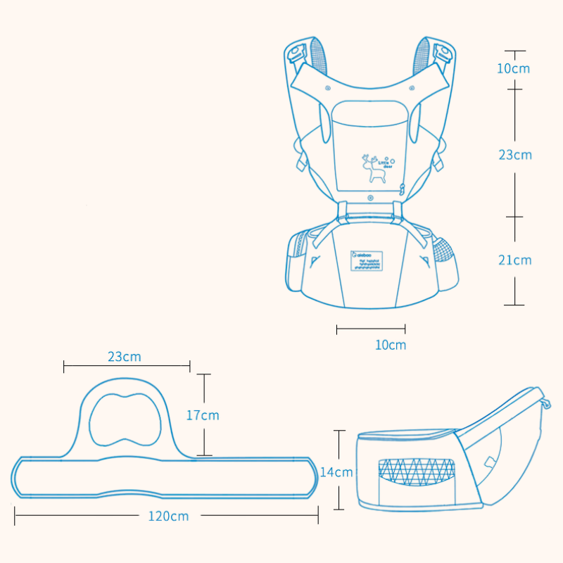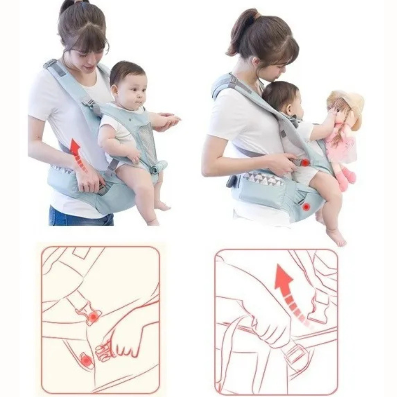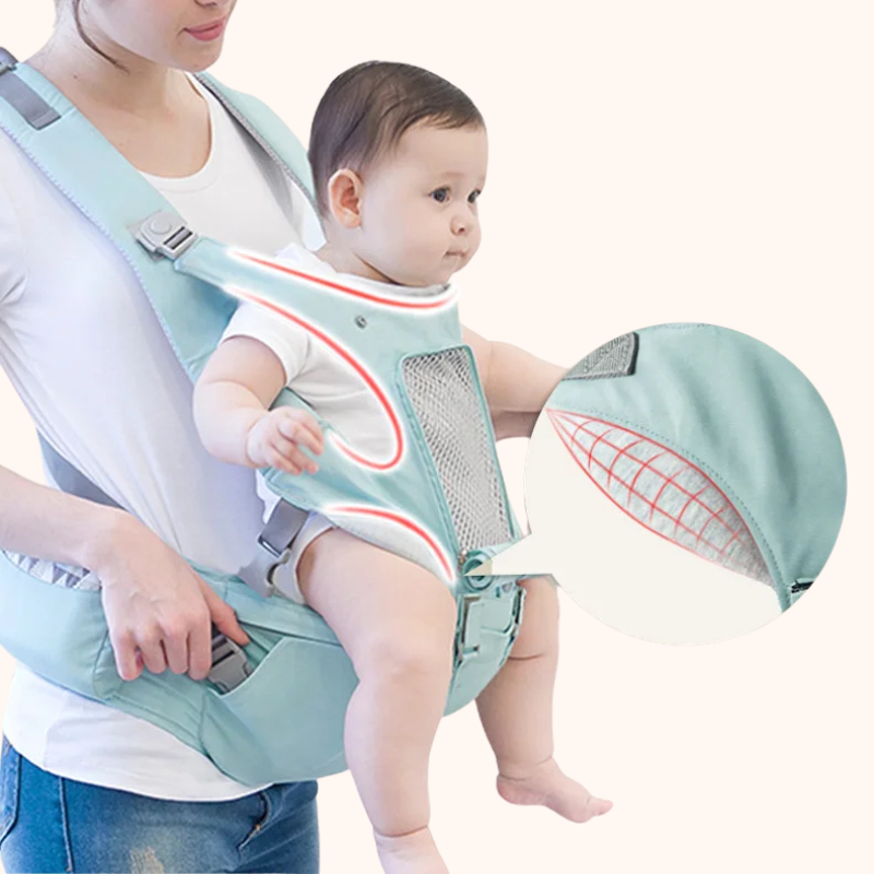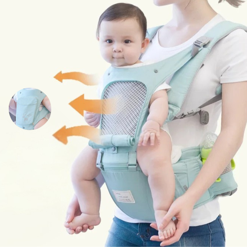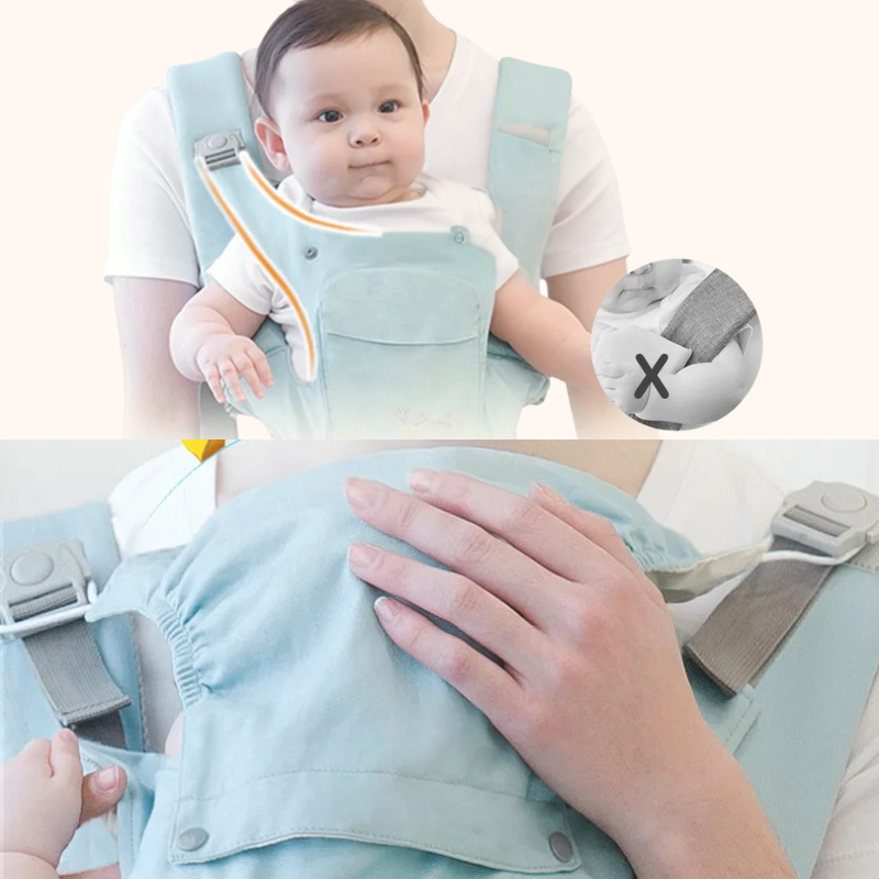 Au quotidien, tout est pensé pour votre confort : panneau respirant ouvrable pour rester au frais, bords doux anti-frottements, boucles latérales faciles à fermer d’une main, et poches intégrées (téléphone, clés, tétine, petite bouteille).
