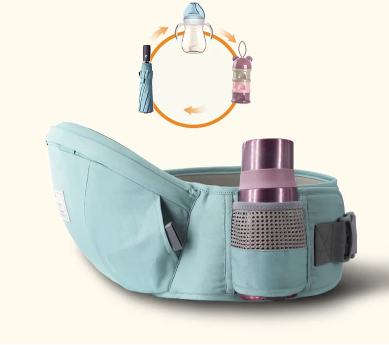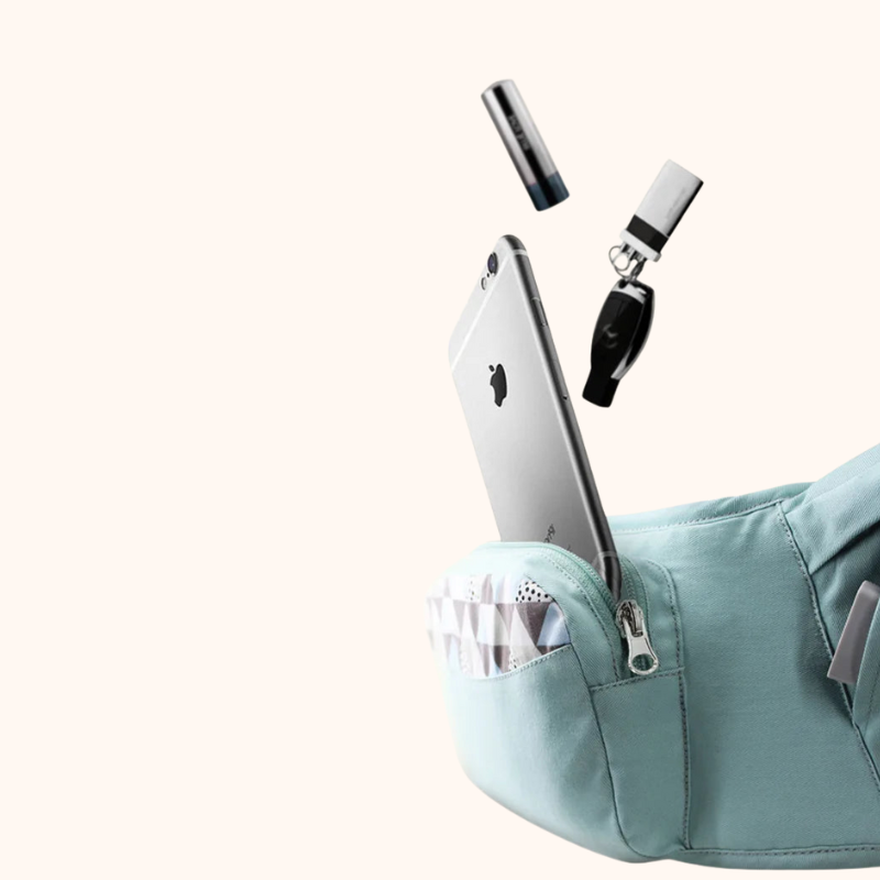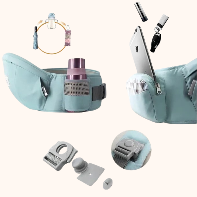 Ce porte-bébé intègre des poches astucieuses, un porte-bouteille, un rangement pour votre téléphone.
