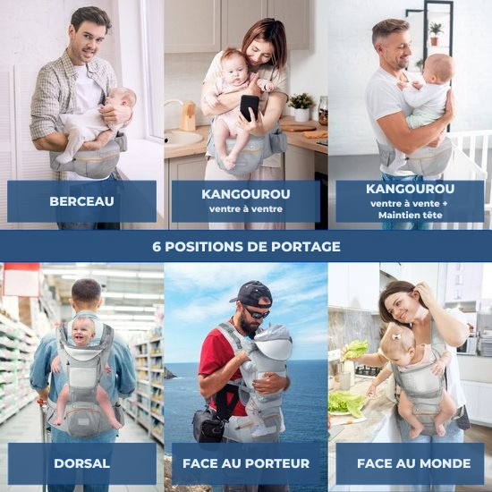 - Façon de porter : Transport avant,Horizontale,Face avant,Face-à-face,Porte-bébé dorsal,Transport latéral