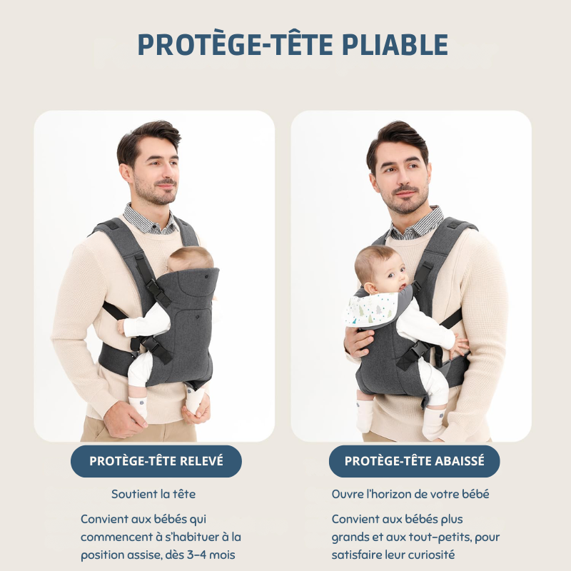 Avec son appui-tête réglable, sa position physiologique et ses multiples modes de portage, ce porte-bébé accompagne votre enfant dès ses premiers mois.