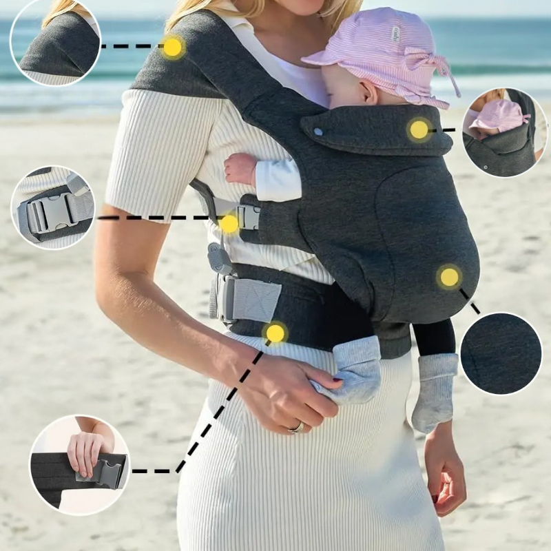 - Façon de porter : Transport avant, Face avant, Face-à-face, Porte-bébé dorsal