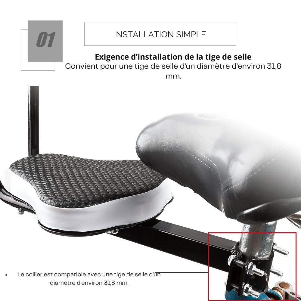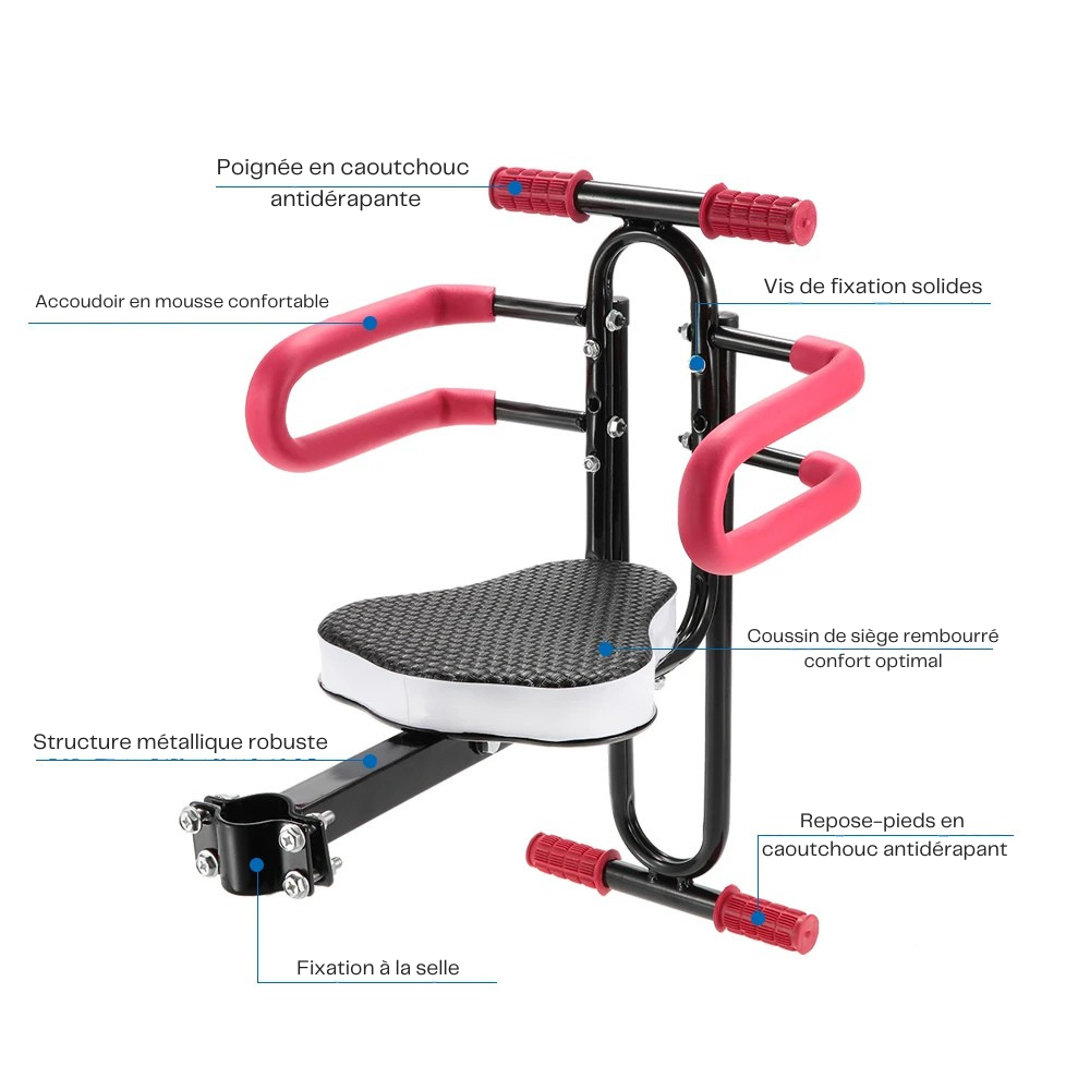 Ce siège avant avec guidon intégré est pensé pour les balades courtes, ludiques, et ultra-sécurisées.